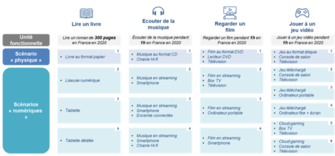 Cette étude s’est focalisée sur 4 services culturels : regarder un film, écouter de la musique, jouer aux jeux vidéo et lire un livre.